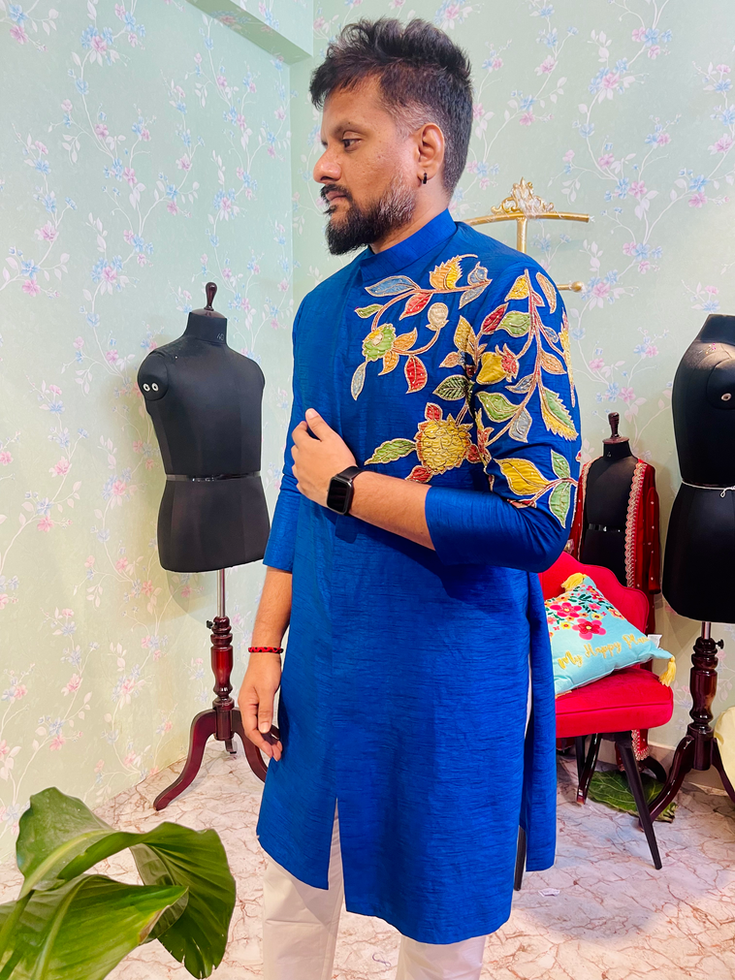 Step into a world of timeless elegance with this Kalamkari applique work kurta. Meticulously handcrafted by artisans in Hyderabad, this piece embodies the "personalized imperfection" that defines true luxury. Designed for the modern global woman who cherishes her roots, it blends traditional Men's with a contemporary silhouette.